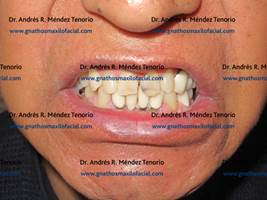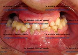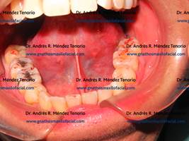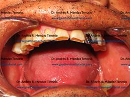 | Ejemplo de restauraciones dentales deficientes y perdidas dentales sin rehabilitación | |