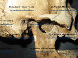 | Cráneo seco que muestra las estructuras óseas de la articulación temporomandibular derecha |