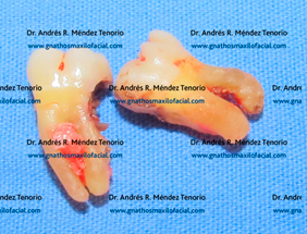 | Fractura de la corona del 3er molar en un intento de extracción. |