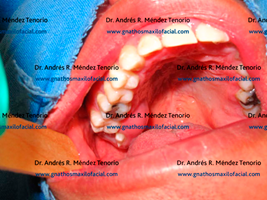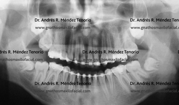 | Paciente con 4 quistes dentigeros relacionados a los 3os molares superiores e inferiores en etapa temprana |