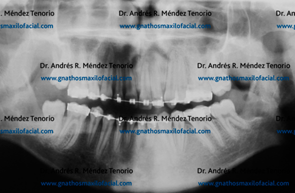| Radiografia de control postextracción de los cuatro 3os molares y enucleación de los quistes |